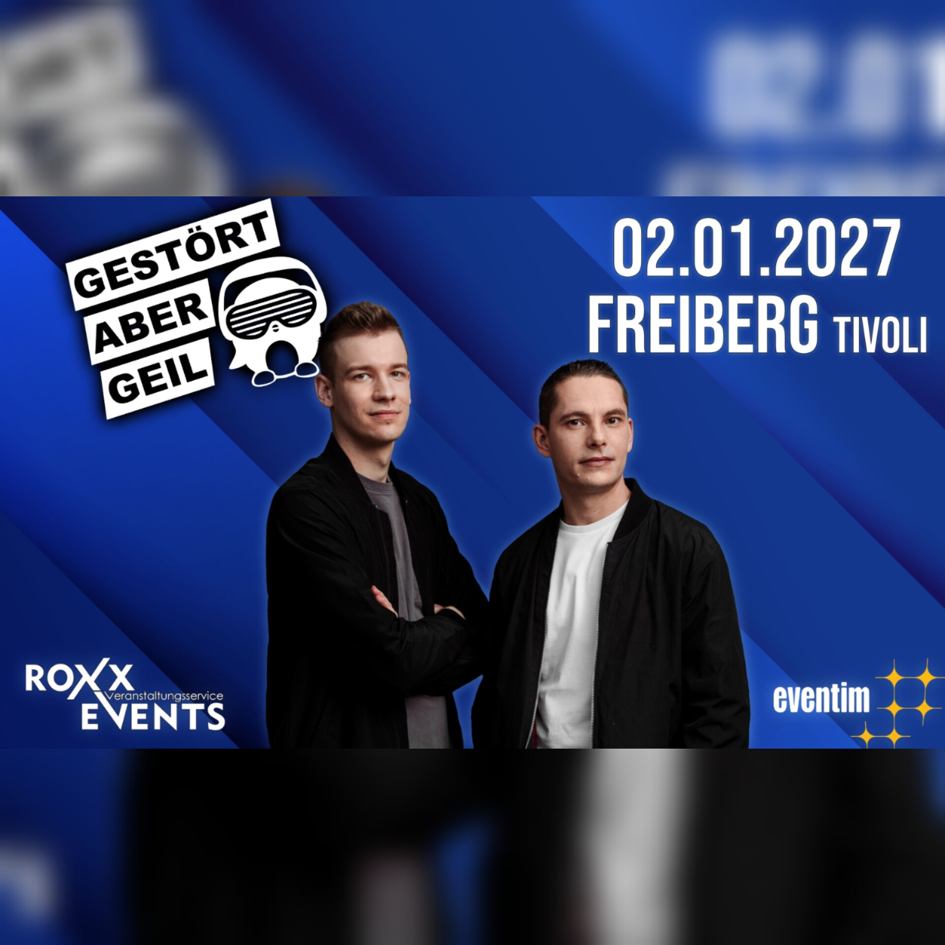Nach der ersten grandiosen und ausverkauften Show im März 2026 kommt das erfolgreichste deutsche DJ Duo Gestört aber Geil am 02.01.2027 wieder nach Freiberg.